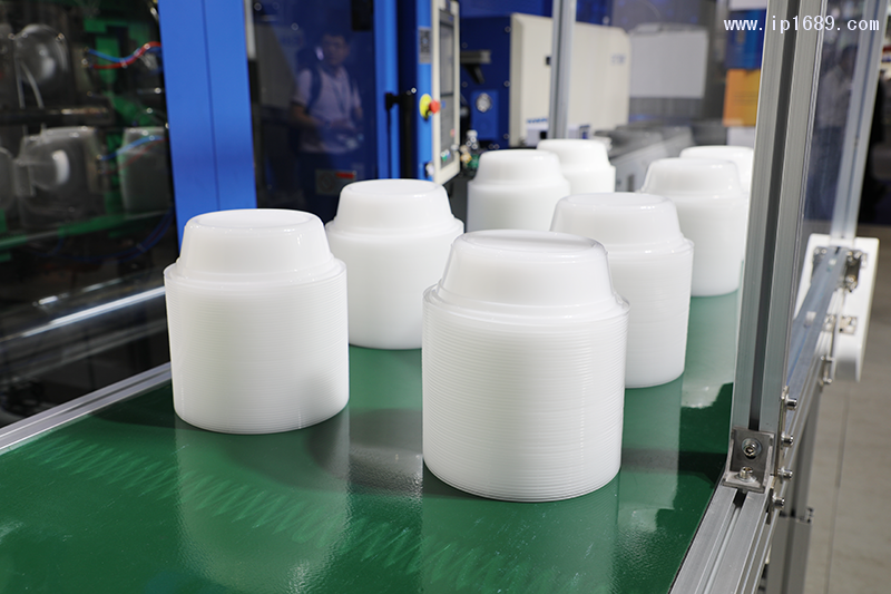 在2019年的德國(guó)K-show上,泰瑞現(xiàn)場(chǎng)展示了一套可降解材料一次性餐盤(pán)的生產(chǎn),配合其DE168c經(jīng)典電動(dòng)注塑機(jī),實(shí)現(xiàn)58克可降解果盤(pán)產(chǎn)品的12秒快速成型。