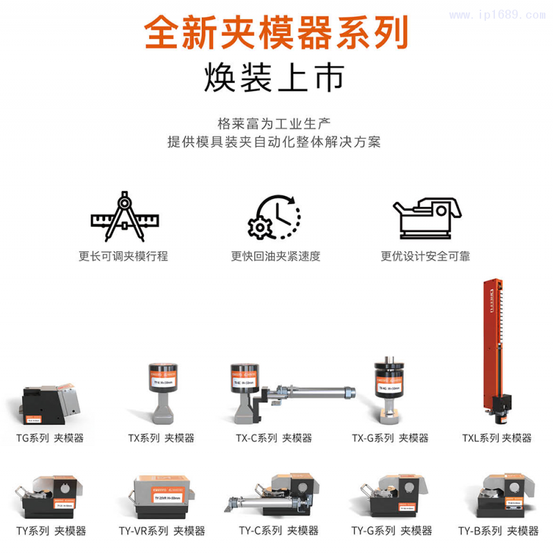 “目前,格萊富的產(chǎn)品分為液壓快速換模系統(tǒng)、電控永磁式快速換模系統(tǒng)、水路油路快插集成、換模臺車系統(tǒng)、智能模庫系統(tǒng)等諸多功能, 真正實現(xiàn)‘一鍵換模’,使智能無人工廠成為現(xiàn)實。”格萊富總經(jīng)理管高峰介紹。