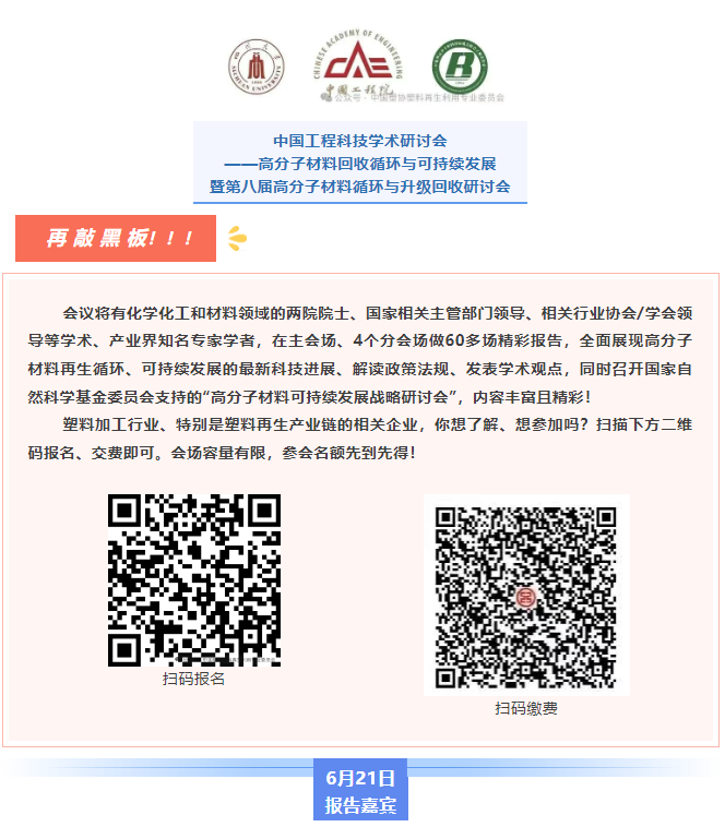 第二十四屆再生塑料高值化回收利用大會(huì)暨中國塑協(xié)塑料再生利用專業(yè)委員會(huì)2025年年會(huì)”在中國工程院舉辦的“工程科技學(xué)術(shù)研討會(huì)——高分子材料回收循環(huán)與可持續(xù)發(fā)展暨第八屆高分子材料循環(huán)與升級(jí)回收研討會(huì)”期間召開,并且作為其“高分子材料碳足跡與全生命周期評(píng)價(jià)”的分會(huì)場,對(duì)會(huì)員單位和參會(huì)代表來說,是近距離聆聽多位行業(yè)院士、專家報(bào)告,全面了解塑料及廢棄高分子材料循環(huán)利用的方向和最新動(dòng)態(tài)的難得機(jī)會(huì),對(duì)業(yè)界同仁來說是精神與知識(shí)的饕餮盛宴!