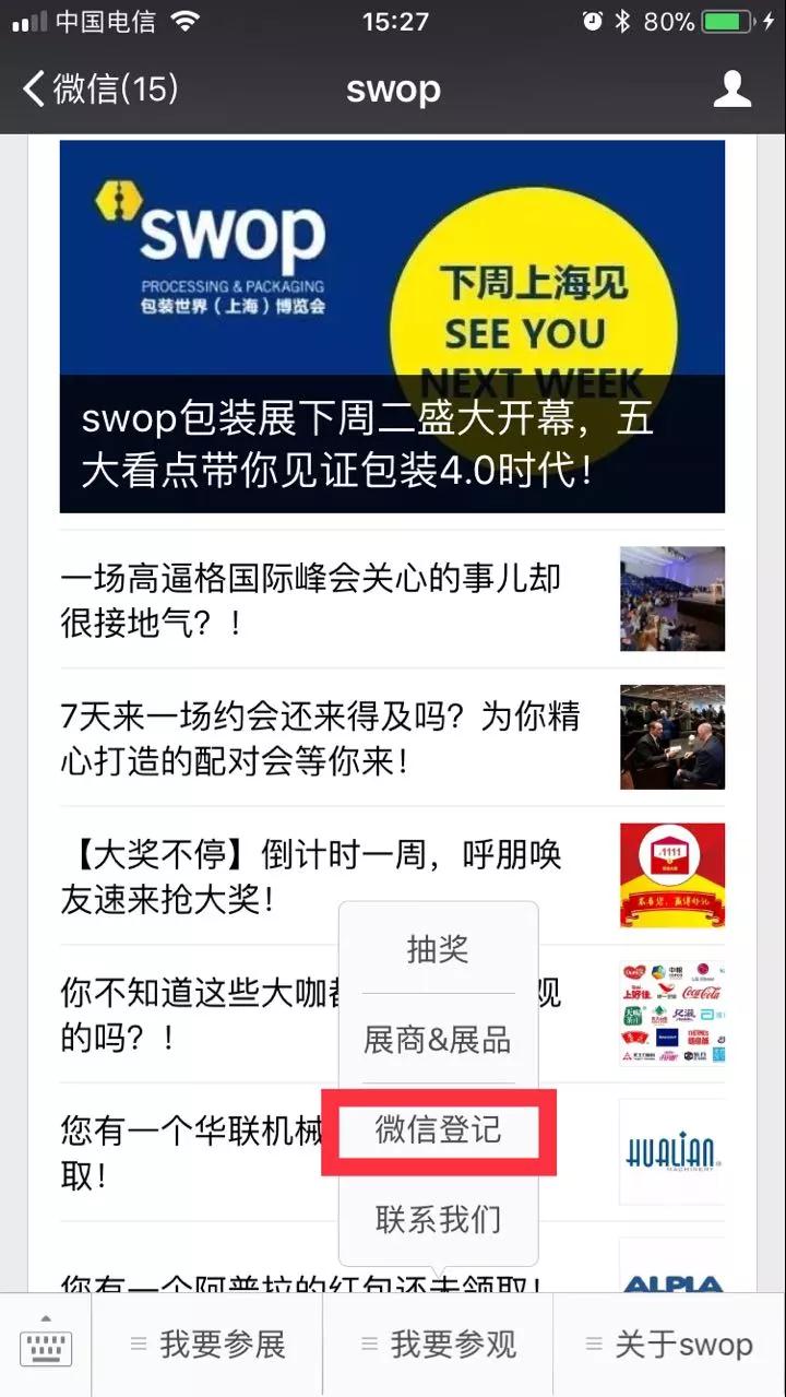 沒(méi)關(guān)系!即刻關(guān)注“swop”官方微信,選擇“我要參觀”→“微信登記”,即可在1分鐘內(nèi)完成預(yù)登記!或者您也可以直接點(diǎn)擊下方“閱讀原文”,完成預(yù)登記!