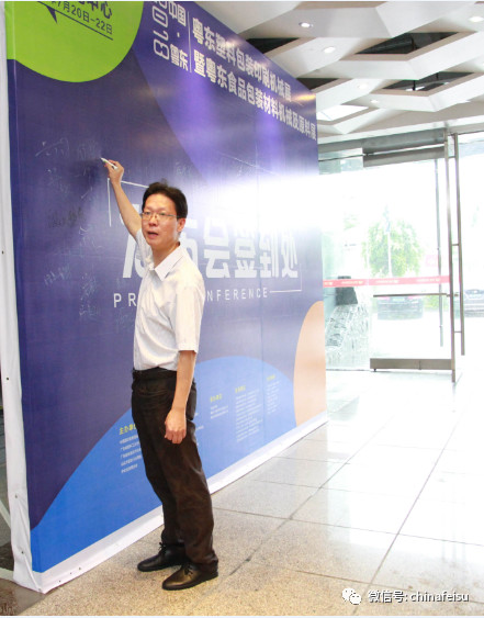 聯(lián)合主辦單位廣東省包裝技術(shù)協(xié)會會長黃啟洪作為主辦方發(fā)言對于大家對展會的支持和關(guān)心表示感謝,感謝大家支持在汕頭在粵東做包裝展會,并對承辦方飛塑科技的工作表示認(rèn)可和支持!