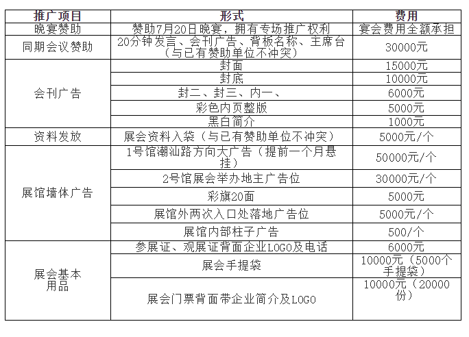 特別說明:凡是符合以上兩項條件的企業(yè)可免費申請9平方米標(biāo)準(zhǔn)展位,另外參展企業(yè)需交1000元展位保證金,開展期間(7月20-22日無特殊意外情況即不可抗力)需到場參加展會,展會結(jié)束后15個工作日內(nèi)承辦方會返還保證金,另外需支付600元大會官方網(wǎng)站錄入及會刊企業(yè)簡介錄入費用為必須繳納費用,合計:1600元。