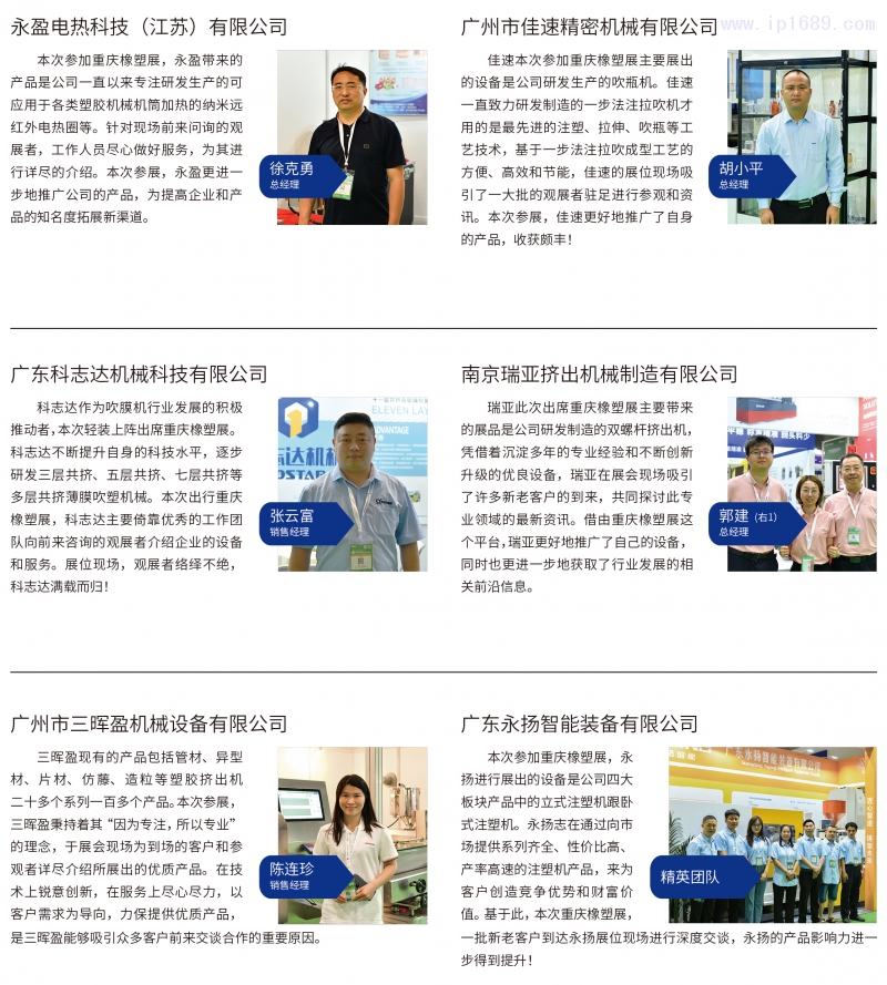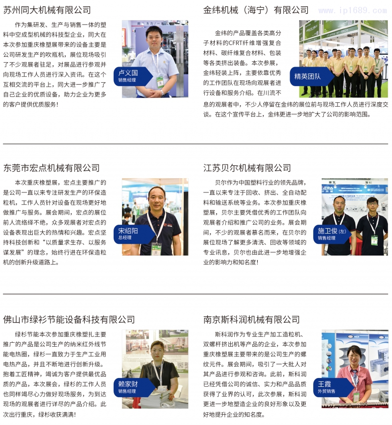 作為西部地區(qū)獨具規(guī)模、高度專業(yè)化的橡塑工業(yè)展,重慶橡塑展為行業(yè)的交流互動提供了不可或缺的服務(wù)平臺。并且重慶工業(yè)實力雄厚,汽車、食品包裝、家電等橡塑相關(guān)的產(chǎn)業(yè)也潛藏著橡塑行業(yè)未來發(fā)展的巨大機遇。這吸引了包括金緯、同大、格萊富、三暉盈、科志達(dá)、斯科潤、坤威等來自全國各地的知名企業(yè)參展,共同探索行業(yè)未來發(fā)展的新機遇。