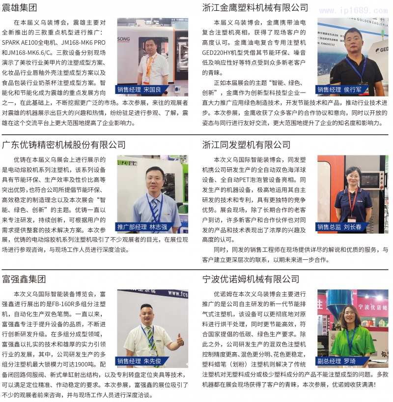 包括全球塑機經(jīng)典企業(yè)香港震雄、臺灣富強鑫以及大陸地區(qū)先進企業(yè)等百余家塑料產(chǎn)業(yè)企業(yè)集聚義烏,共同在此平臺上交流行業(yè)未來發(fā)展的最新趨勢。