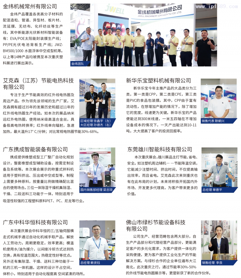來自國內(nèi)排名前35強(qiáng)的優(yōu)質(zhì)塑機(jī)企業(yè)、100+國際國內(nèi)領(lǐng)先技術(shù)同臺競技,積極呈現(xiàn)行業(yè)領(lǐng)域智慧成果,為塑料產(chǎn)業(yè)邁向高端制造的新征程注入新動力。行業(yè)專家院士聚焦專業(yè)領(lǐng)域熱點話題精彩分享,共謀塑料行業(yè)合作新前景。