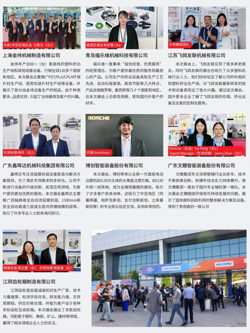 在接受《塑膠工業(yè)》采訪時,參展企業(yè)負責人紛紛表示,將緊抓展會這一重要契機,幫助企業(yè)積極應對嚴峻外貿(mào)形勢,與海外采購商洽談合作和交換行業(yè)信息,助力企業(yè)在烏茲別克斯坦乃至中亞市場搶占市場份額。