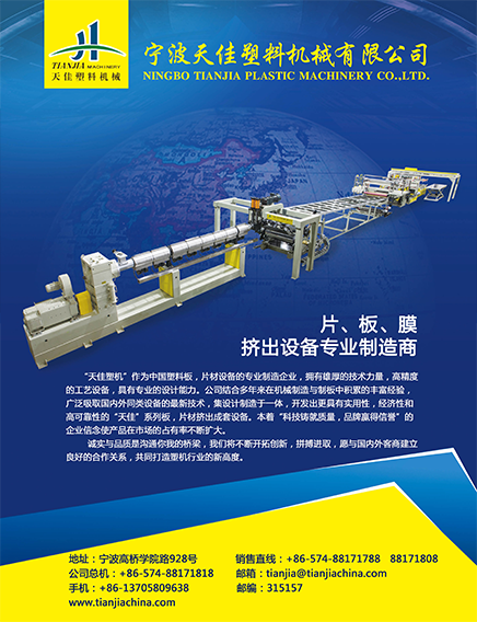 “天佳塑機(jī)”作為中國(guó)塑料板、片材設(shè)備的專業(yè)制造企業(yè),擁有雄厚的技術(shù)力量,先進(jìn)的工藝設(shè)備,具有領(lǐng)先的設(shè)計(jì)能力。公司結(jié)合多年來(lái)在機(jī)械制造與制板中積累的豐富經(jīng)驗(yàn),廣泛吸取國(guó)內(nèi)外同類設(shè)備的最新技術(shù),集設(shè)計(jì)制造于一體,開發(fā)出更具實(shí)用性、經(jīng)濟(jì)性和高可靠性的“天佳”系列板、片材擠出成套設(shè)備。本著“科技鑄就質(zhì)量,品牌贏得信譽(yù)”的企業(yè)理念使產(chǎn)品在市場(chǎng)的占有率不斷擴(kuò)大。