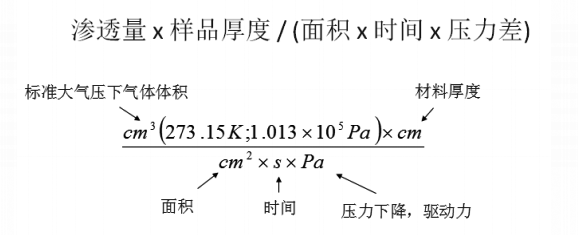 計(jì)算方式:包裝材料的阻隔性可以用氣體透過(guò)量(率)或氣體透過(guò)系數(shù)來(lái)衡量。在GB/T 1038-2000中,氣體透過(guò)量指的是在恒定溫度和單位壓力差下,在穩(wěn)定透過(guò)時(shí),單位時(shí)間內(nèi)透過(guò)試樣單位面積的氣體的體積。氣體透過(guò)系數(shù)則是指在恒定溫度和單位壓力差下,在穩(wěn)定透過(guò)時(shí),單位時(shí)間內(nèi)透過(guò)試樣單位厚度、單位面積的氣體的體積。