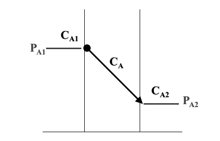 •材料兩側(cè)的滲透物分壓梯度如下: