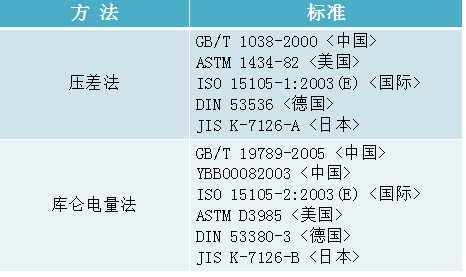 GB/T 19789-2005 <中國(guó)> YBB00082003 <中國(guó)> ISO 15106-2:2003(E) <國(guó)際> ASTM D3985 <美國(guó)> DIN 53380-3 <德國(guó)> JIS K-7126-B <日本> |