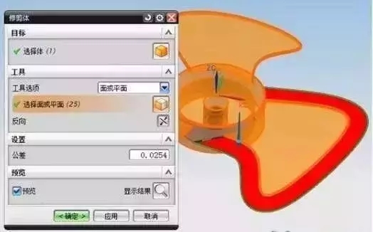 3、以產(chǎn)品為修剪邊界把多余的面修剪掉,如下圖: