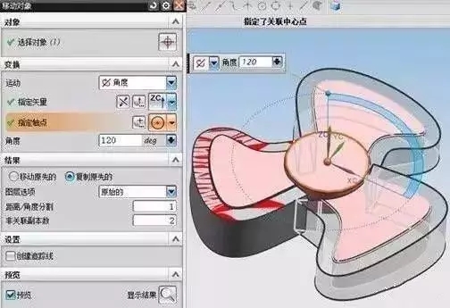 5、用移動對象-角度旋轉(zhuǎn)出另外兩個風(fēng)葉分型實體,如下圖: