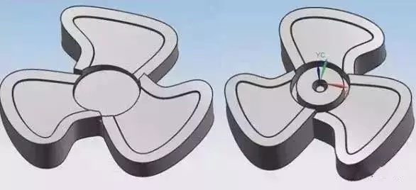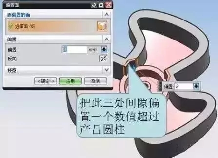 2、風(fēng)扇的前后模面是兩個平行的面,所以分型面以其中一個面偏置即可,如下圖