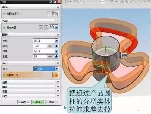 7、用產(chǎn)品求差后,再以做出來的分型實體再求差,如下圖: