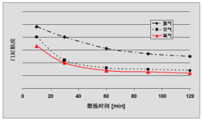 圖1:天然橡膠(NR)在氮氣、空氣和氧氣環(huán)境下的塑煉