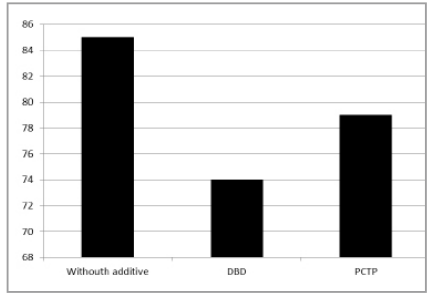 在機械塑煉的比較中,使用這兩種塑解劑都可以加速塑煉過程中天然橡膠的軟化,因此可以節(jié)省大量的能量和時間(圖3)。較高溫度下(>100℃),PCTP塑解劑的效果不錯。而DBD塑解劑在高溫下的效果則更佳。