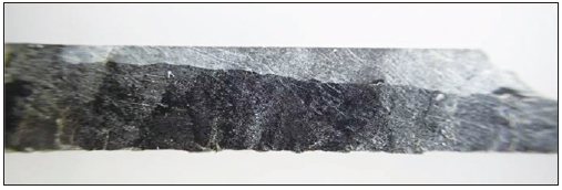 圖4 通過轉(zhuǎn)換工藝生產(chǎn)的位于拉伸棒斷裂點(diǎn)熱塑性聚酰胺(黑色)之上的B M C 熱固性材料(塊狀模塑料,淺色) 的微觀圖( ©Kunststoff-InstitutLüdenscheid)