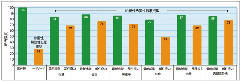 圖6 聚酰胺預(yù)制件與酚醛樹脂包覆成型之間的粘合強(qiáng)度取決于酚醛樹脂固體棒的百分比強(qiáng)度(©Kunststoff-Institut Lüdenscheid)
