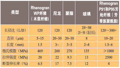 表1、各種短纖維類型的比較