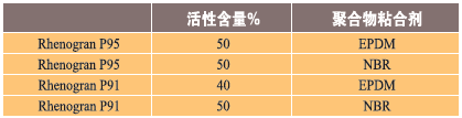 表6、聚合物結(jié)合芳綸纖維Rhenogran P95和P91的種類
