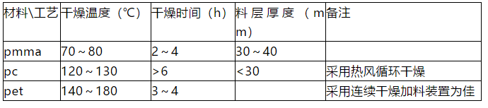 表 2,透明塑料的干燥工藝: