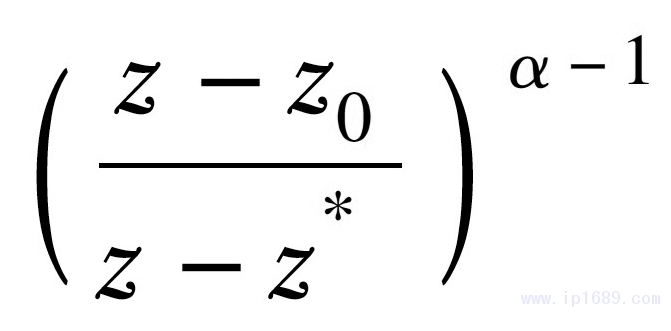 式中z0是尖角點(diǎn)的坐標(biāo),f1是一個(gè)單值解析函數(shù),α=π/(π-β)。因此可以得到