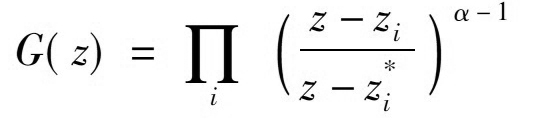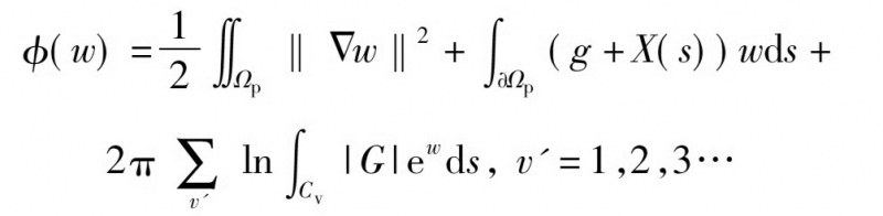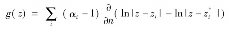 式(3)中,z*是Ωp區(qū)域外部線段z0z*上除z0外的一點(diǎn),從調(diào)和函數(shù)u中去除所有奇點(diǎn){zi}后得到一個(gè)剩余的函數(shù)w即為Ωp上的調(diào)和函數(shù),并且w在邊界上光滑,從而得到式(4)