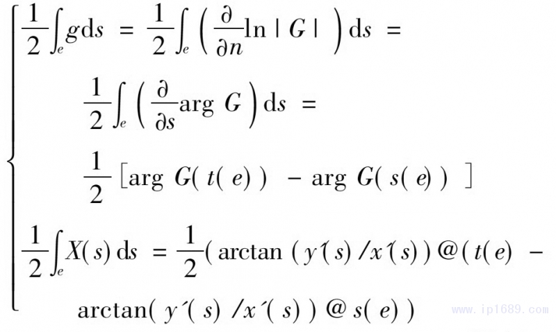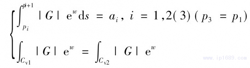 為了使調(diào)和函數(shù)w唯一,需要在外邊界上選取兩個(gè)點(diǎn)pi(i=1,2(3)),從而得到限制條件式(7)