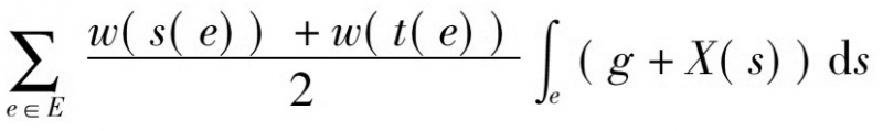 式中e為三角網(wǎng)格的邊。式(9)中g(shù),X(s)可以分別離散為