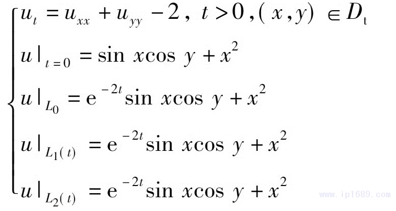 取r=2,a=0.6,b=0.8,c=0.8,ω=1,則定解問題式(22)變?yōu)?/span>
