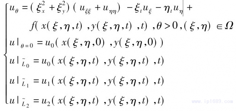 利用共形映射將求解區(qū)域Dt變?yōu)閳A界區(qū)域,將自變量(x,y)變?yōu)椋?xi;,η),即得
