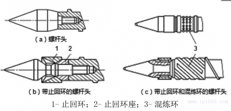 圖 1 注射螺桿頭部結(jié)構(gòu)常用的三種形式