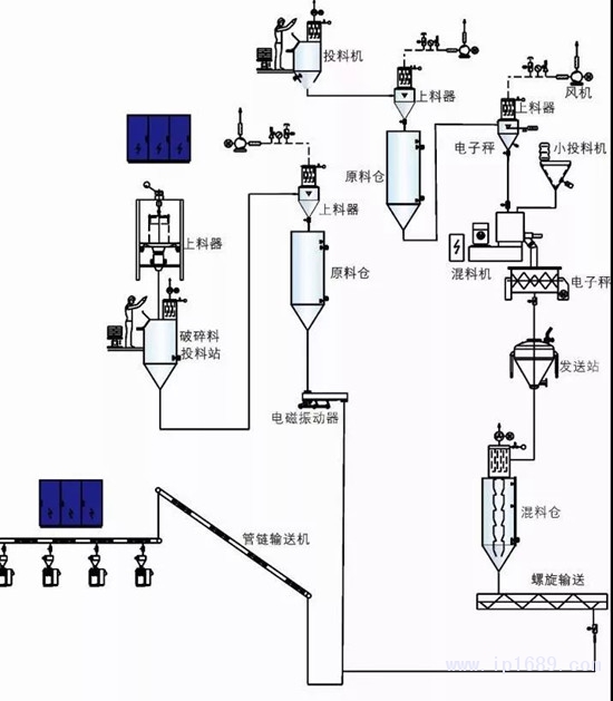 隨著人們?nèi)找鎸Νh(huán)保要求的提高以及對節(jié)能降耗的苛求,在PVC塑料制品加工行業(yè),特別是PVC塑料管道生產(chǎn)企業(yè),在擠出生產(chǎn)線的上游的原料供給方面,正逐漸淘汰傳動的勞動密集作業(yè),進而采用全自動的集中供料方案。