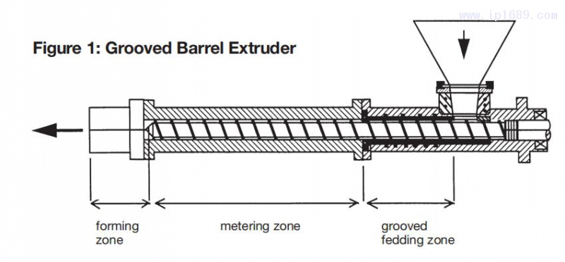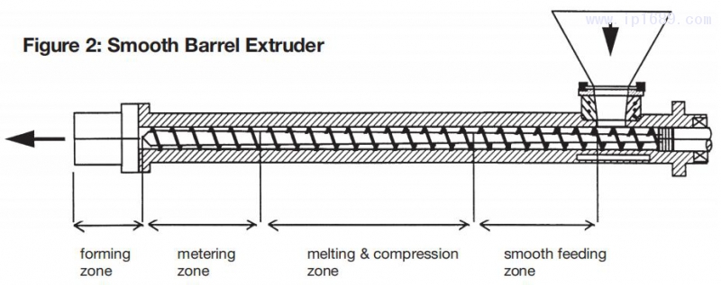 大多數(shù)單螺桿擠出機(jī)都適用于發(fā)泡擠出,螺桿的長徑比至少為24:1,常用的長徑比為30:1。進(jìn)料區(qū)的溫度應(yīng)低于發(fā)泡劑開始分解的臨界溫度,以防止其過早地分解。