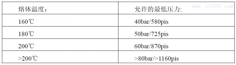 實(shí)驗(yàn)表明,以下的壓力可以作為生產(chǎn)可用的發(fā)泡產(chǎn)品的最低標(biāo)準(zhǔn):