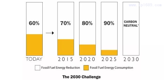 2030年挑戰(zhàn)是建筑2030倡議的一個(gè)項(xiàng)目,要求全球建筑界為新建和翻新的建筑制定一系列溫室氣體減排目標(biāo)。讓所有新建筑、開(kāi)發(fā)項(xiàng)目和重大翻修項(xiàng)目的設(shè)計(jì)都可以滿足化石燃料、溫室氣體(GHG)排放和能源消耗性能標(biāo)準(zhǔn),這些標(biāo)準(zhǔn)是某一特定建筑類型平均水平的50%(或國(guó)家平均水平的60%)。