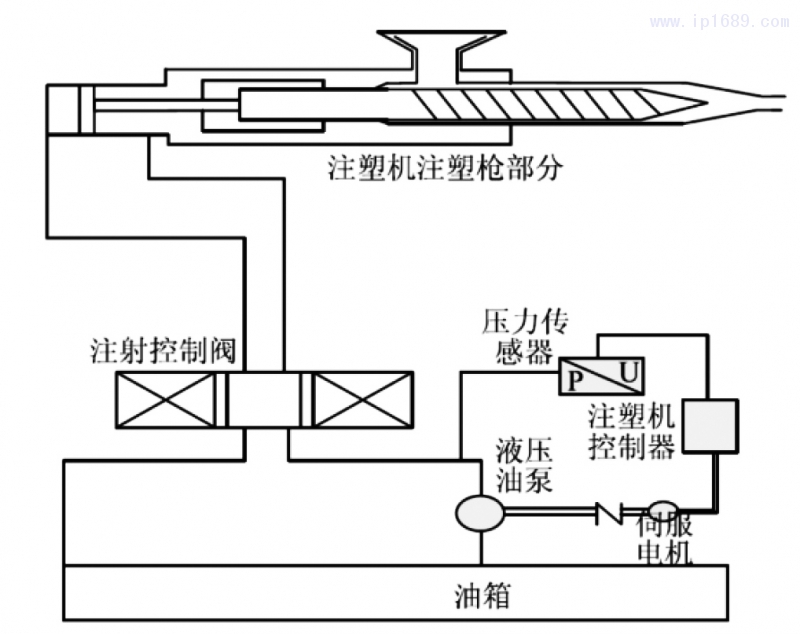 液壓系統(tǒng)是注塑機(jī)的重要組成部分,液壓控制系統(tǒng)直接關(guān)系到塑料制品的質(zhì)量和性能[1-3]。圖1為注塑機(jī)伺服閉環(huán)控制系統(tǒng),該系統(tǒng)包含伺服電機(jī)、液壓泵、液壓閥等器件,與注塑產(chǎn)品生產(chǎn)緊密關(guān)聯(lián)。為保證注塑機(jī)穩(wěn)定工作,注塑機(jī)液壓伺服系統(tǒng)主要采用PID閉環(huán)控制技術(shù)進(jìn)行反饋調(diào)節(jié)。文獻(xiàn)[4]將PID與神經(jīng)網(wǎng)絡(luò)融合,實(shí)時調(diào)節(jié)液壓控制系統(tǒng)相關(guān)參數(shù),顯著提高了注塑制品的尺寸精度;文獻(xiàn)[5]使用PID分段控制液壓系統(tǒng),提高了注塑機(jī)控制精度,克服了PID固定參數(shù)引起控制精度下降的問題;文獻(xiàn)[6]結(jié)合變論域與自適應(yīng)模糊PID控制理論設(shè)計(jì)了控制系統(tǒng),顯著提高了注塑機(jī)液壓系統(tǒng)的動態(tài)性能。上述方案均具有自動調(diào)節(jié)能力,大幅提升了注塑制品的質(zhì)量和生產(chǎn)效率,但是在參數(shù)選擇上仍然不夠快速靈活,存在調(diào)節(jié)時間過長等問題。