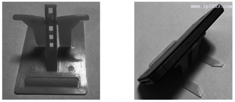 智能手機(jī)的高速發(fā)展,帶來(lái)了手機(jī)周邊產(chǎn)品設(shè)計(jì)開(kāi)發(fā)的繁榮。手機(jī)支架類產(chǎn)品,出現(xiàn)于數(shù)年前,然而短短的幾年,已經(jīng)成為了相當(dāng)一部分用戶出行過(guò)程中必不可少的一類產(chǎn)品,為使用者帶來(lái)了很多便利。為了出行攜帶方便,手機(jī)支架的樣式越來(lái)越多,體積也越來(lái)越小。我們?cè)O(shè)計(jì)的這款手機(jī)支架和銀行卡尺寸基本相同,可以放在錢包或者卡包里,隨處可用,如圖1所示。它作為日常用品,要具備安全無(wú)毒,化學(xué)穩(wěn)定性高,不易分解等特點(diǎn)和價(jià)格低廉的要求;同時(shí),作為承重物件在一定的高度掉下或過(guò)載時(shí),不會(huì)出現(xiàn)裂紋甚至斷裂,這就意味著塑件所使用的材料要有一定的機(jī)械強(qiáng)度。綜合以上考慮,我們選用了無(wú)臭無(wú)毒的PP材料。