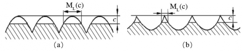 根據零件使用工況,對該活塞桿鍍鉻處理后對它 的耐磨性要求較高。對零件拋光后表面微觀形狀進行 分析,當對給定水平位置 c 輪廓實體材料長度 Ml(c) 如圖 2(a) 所示時,鍍鉻后的耐磨性較好。