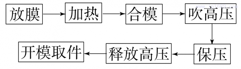 (4) 吹高壓。合模完成后,通過氣壓泵向模具內(nèi) 吹高壓,高壓吹氣壓力為 30 MPa ;