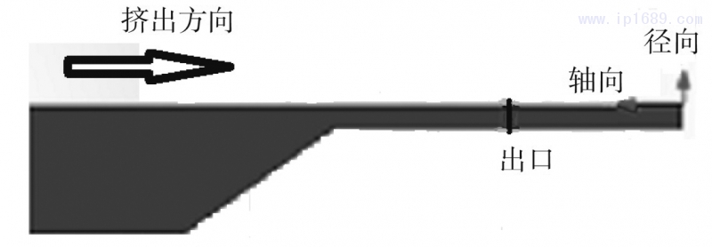 共混物擠出口模的過程中,受到壁面無滑移條件的影響,口模中熔體流動(dòng)速率的梯度分布是發(fā)生擠出脹大的重要因素,尤其是擠出口模徑向方向上的速度梯度。