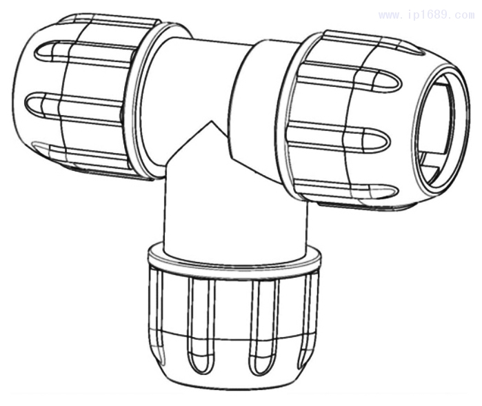 一種三通塑料延長件,包括連接件主體,連接件主體上設(shè)有3個(gè)連接頭,3個(gè)連接頭之間相互連通形成中空結(jié)構(gòu),連接頭上設(shè)有若干彈性壓片,若干彈性壓片沿連接頭周向方向平均設(shè)置,彈性壓片外表面設(shè)有螺紋,彈性壓片上設(shè)有鎖緊螺母,在三個(gè)連接頭內(nèi)至少有一處設(shè)有起增強(qiáng)摩擦作用的環(huán)形套環(huán)。通過在連接頭內(nèi)設(shè)置環(huán)形套環(huán),限位凸臺(tái)與彈性壓片相抵觸,防止環(huán)形套環(huán)掉入連接頭內(nèi)部。延晾桿穿過環(huán)形套環(huán)后,沿鎖緊方向扭動(dòng)鎖緊螺母,鎖緊螺母與彈性壓片的螺紋實(shí)現(xiàn)螺紋連接。通過自鎖力作用彈性壓片向連接頭中心靠攏,由于延長晾桿與彈性壓片之間設(shè)置了環(huán)形套環(huán),增加了延長晾桿與連接頭的摩擦力,使延長晾桿不會(huì)從連接頭上滑落,提高安全性(申請專利號:CN201820469615.2)。