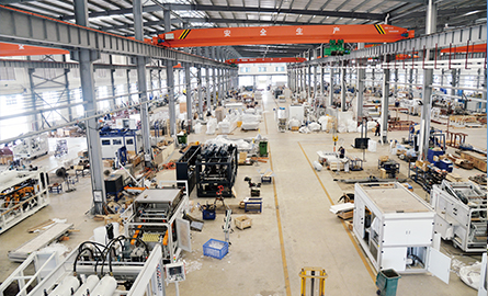 有了前瞻性的設(shè)計理念和上乘的材料,達誠智能擠出及熱成型裝備生產(chǎn)線的打造便進入了精益加工環(huán)節(jié)。正所謂“工欲善其事,必先利其器”,沒有高精度的加工設(shè)備就不可能打造出好的零部件。為此,達誠不惜投入巨資引進國際先進加工設(shè)備。“我們的加工設(shè)備很多都是從歐美知名企業(yè)引進的,比如說,我們的五軸加工設(shè)備、三軸加工設(shè)備是德瑪吉的,測量儀是德國三坐標的,慢走絲是從瑞士進口的,加工中心和磨床是從美國等先進國家進口的。”羅董講道。因為具備了世界級的高精度加工設(shè)備,達誠智能擠出及熱成型生產(chǎn)線的零部件加工精度,達到μ級,并且能夠在恒溫恒濕的環(huán)境下實現(xiàn)高標準加工,可與國際先進水平接軌。