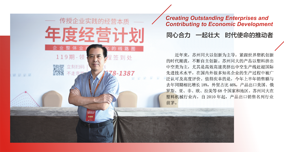 提到企業(yè)家,你會(huì)想到很多耳熟能詳?shù)拿?。但我?huì)想到,蘇州同大機(jī)械有限公司(以下簡稱“蘇州同大”)副總經(jīng)理朱建新,30多年的從業(yè)經(jīng)歷是侃侃而談的底氣,亦是對(duì)這份事業(yè)的執(zhí)念。金秋時(shí)節(jié),《塑膠工業(yè)》記者帶您一起走進(jìn)蘇州同大。