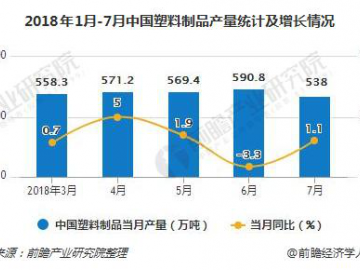 7月塑料制品行業(yè)運行情況1. 生產(chǎn)情況:2018年1-7月,我國塑料制品行業(yè)累計完成產(chǎn)量3560.2萬噸,同比增長2.2%。2. 銷售情況:2018