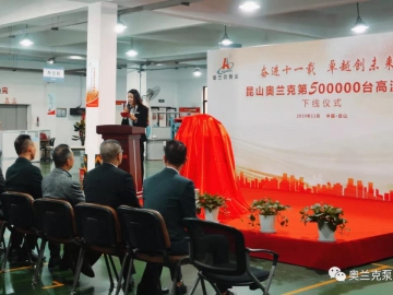 2019年11月18日,以“奮進(jìn)十一載 · 卓越創(chuàng)未來”為主題的奧蘭克泵業(yè)第50萬臺高溫泵下線儀式,在奧蘭克生產(chǎn)車間隆重舉行