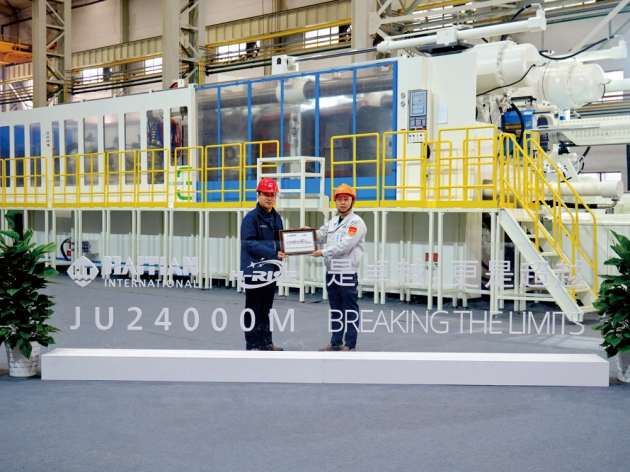 交付的JU24000M注塑機,鎖模力2400T,最大旋轉(zhuǎn)直徑4000mm,中板承重20T*2。