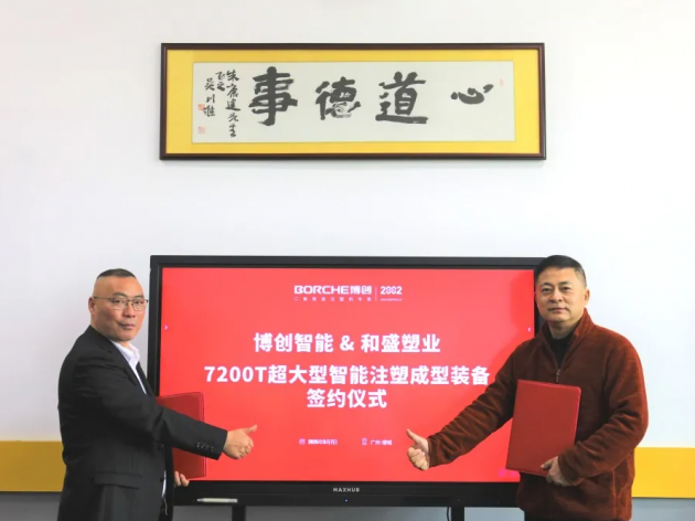 近日,博創(chuàng)智能與和盛塑業(yè)正式簽約,將交付7200噸超大型二板智能注塑成型裝備!該設(shè)備用于超大型水槽注塑成型,主要應(yīng)用于火力發(fā)