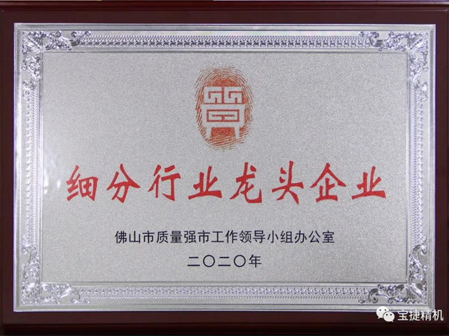 近日,寶捷公司收到來自佛山市市場(chǎng)監(jiān)督管理局好消息:根據(jù)《佛山市質(zhì)量強(qiáng)市工作領(lǐng)導(dǎo)小組辦公室關(guān)于開展2020年佛山市細(xì)分行業(yè)龍頭企業(yè)申報(bào)工作的通知》有關(guān)規(guī)定,經(jīng)專家組評(píng)審,佛山市寶捷精密機(jī)械有限公司獲批被...