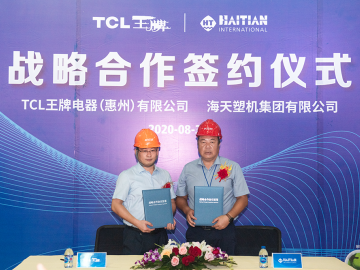 8月31日,海天塑機(jī)集團(tuán)有限公司與TCL王牌電器(惠州)有限公司在海天通途路事業(yè)部舉行戰(zhàn)略合作框架協(xié)議簽約儀式。